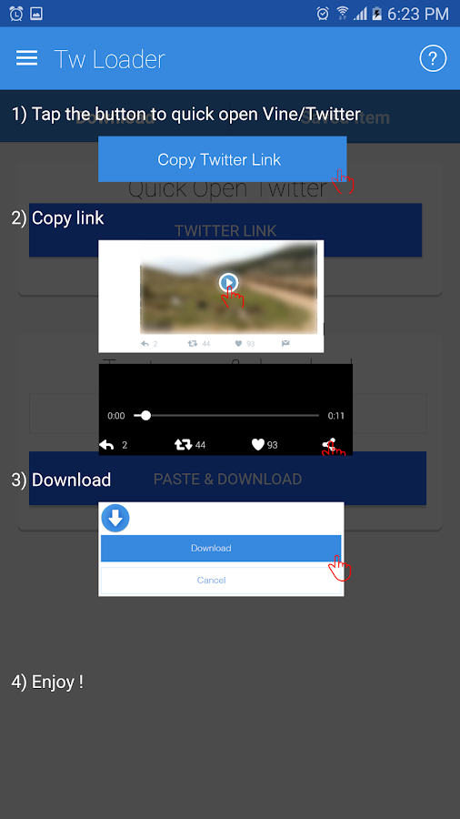 - This app makes easy to save, download and share your favorite videos from Twitter.